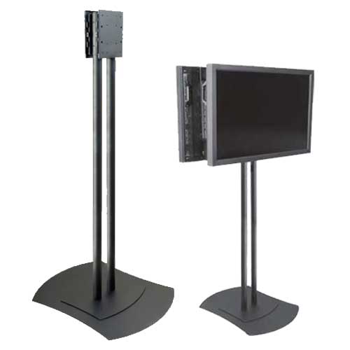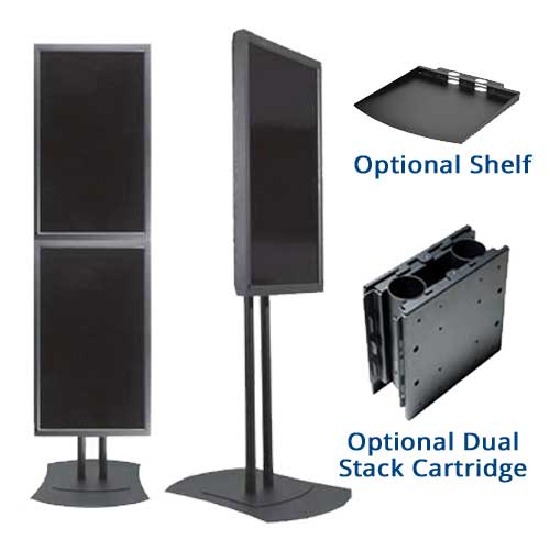 Ideal for screen sizes ranging from 32″ to 60″ with a maximum weight of 200lbs. Can be used to mount screens in both Landscape AND Portrait orientations. Able to accommodate up to 4 screens on one stand. Integrated security fasteners lock the screens in place, while internal cord management completely hides all wires.
